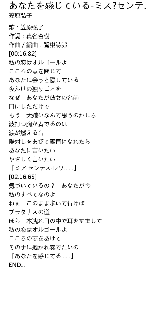 | [00:06.95] | 歌:笠原弘子 |