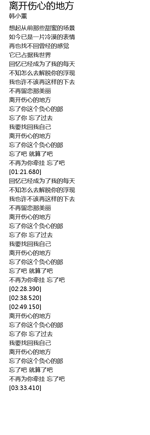 | [03:14.540] | lí kāi shāng xīn de dì fāng |