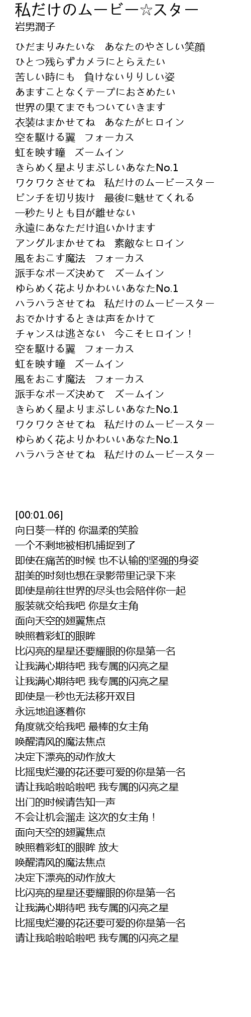 | [04:16.99] | ハラハラさせてね 私だけのムービースター |