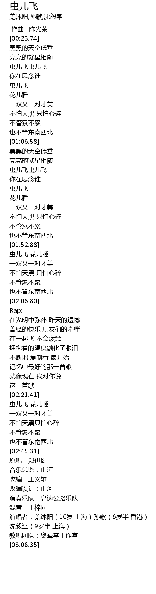 | [03:05.58] | 演唱者:羌沐阳(10岁 上海)孙歌(6岁半 香港) |