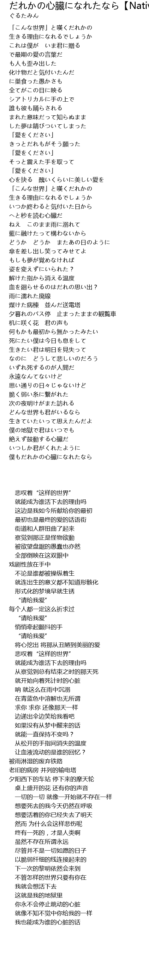 | [03:01.956] | 僕もだれかの心臓になれたなら |