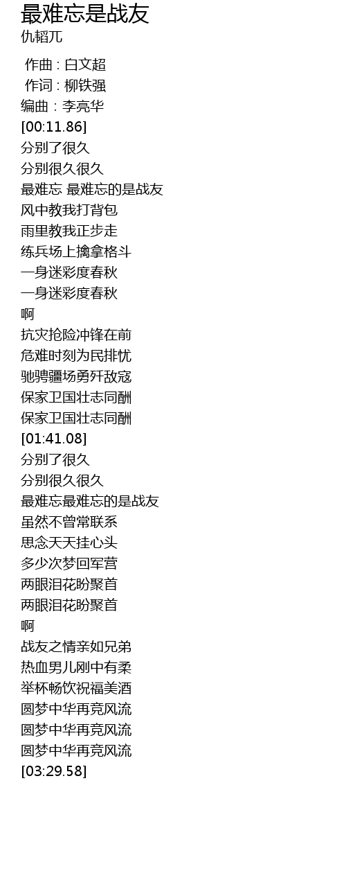 | [02:06.92] | 最难忘最难忘的是战友 |