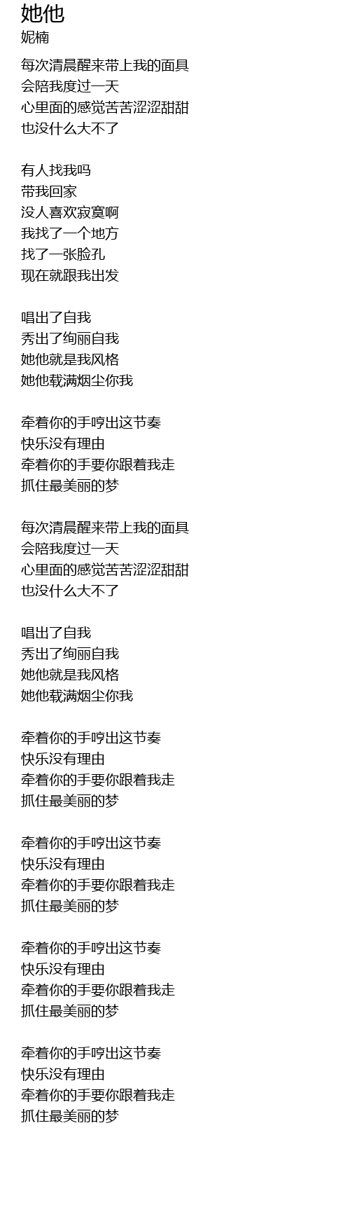 | qiān zhe nǐ de shǒu yào nǐ gēn zhe wǒ zǒu | |