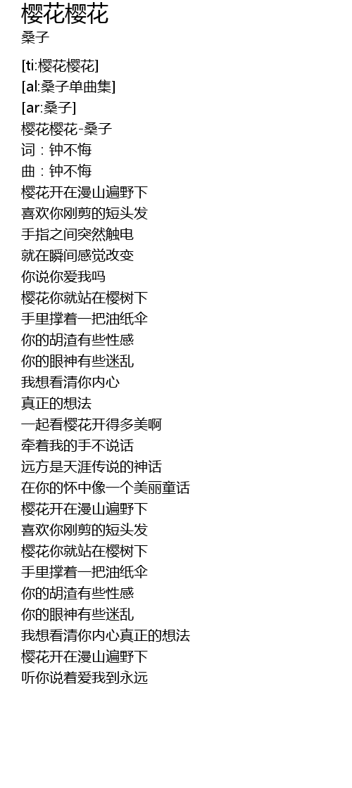 | [00:00.00] | 樱花樱花-桑子 |