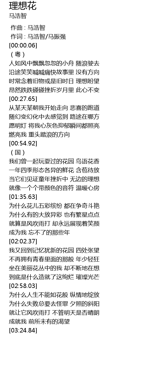 | [00:00.002] | 作词 : 马浩智/马振强 |