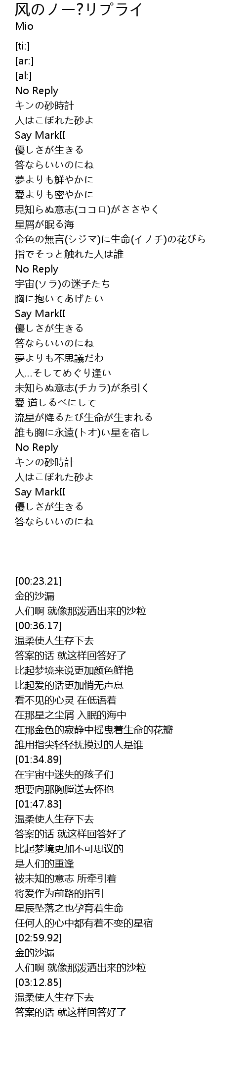 | [01:18.66] | 金色の無言(シジマ)に生命(イノチ)の花びら |
