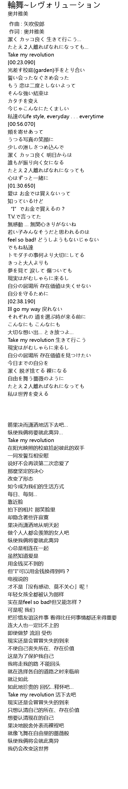 | [03:39.490] | 自分の居場所 存在価値を見つけたい |