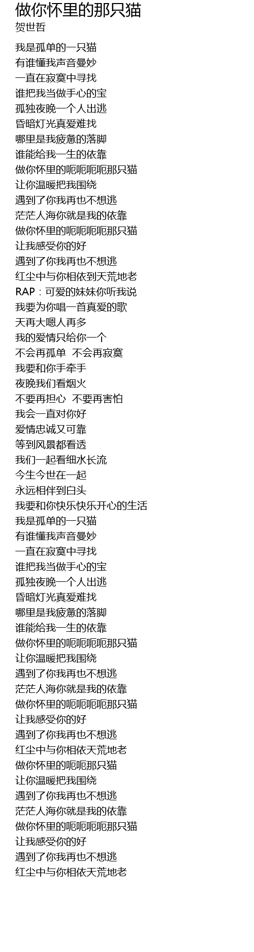 | [03:00.54] | 做你怀里的呃呃那只猫 |
