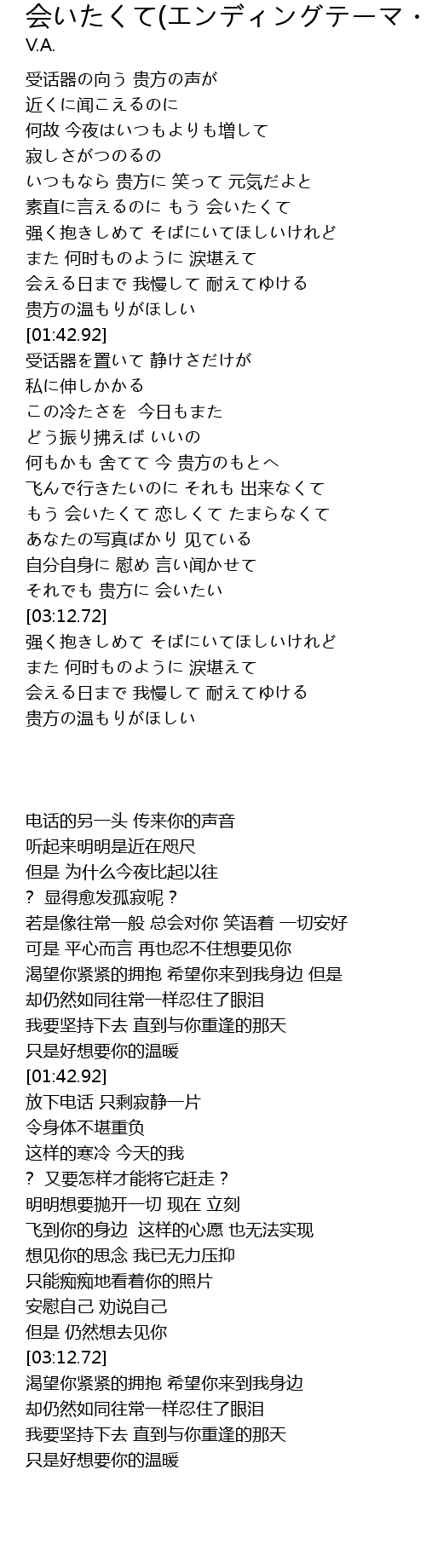 | [02:38.88] | もう 会いたくて 恋しくて たまらなくて |