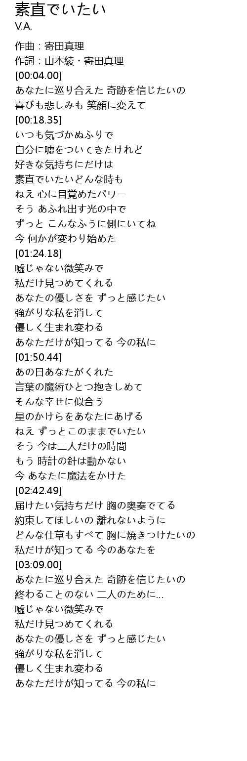 | [00:02.00] | 作詞:山本綾・寄田真理 |
