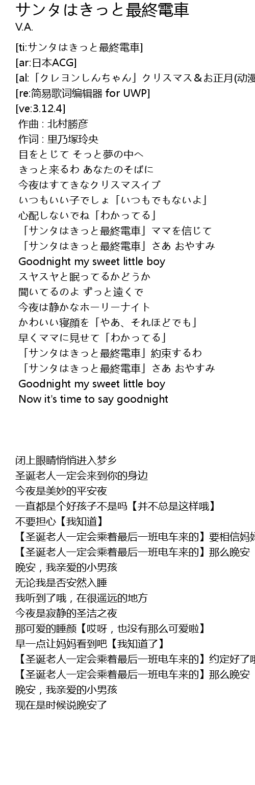 | [02:51.75] | 「サンタはきっと最終電車」さあ おやすみ |