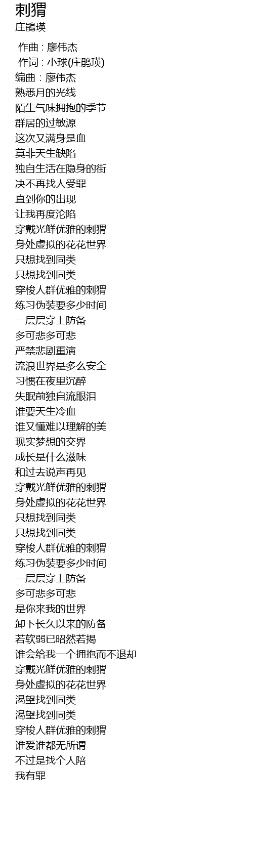 | Song | 刺猬 |