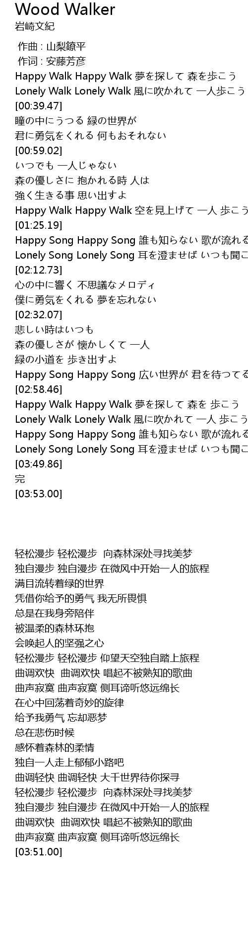 | [03:10.11] | Happy Walk Happy Walk 夢を探して 森を 歩こう |