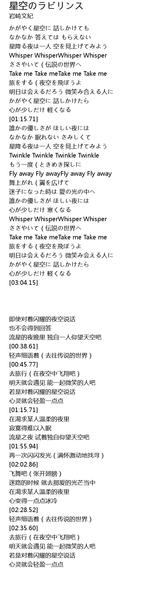 | [01:55.94] | Twinkle Twinkle Twinkle Twinkle |