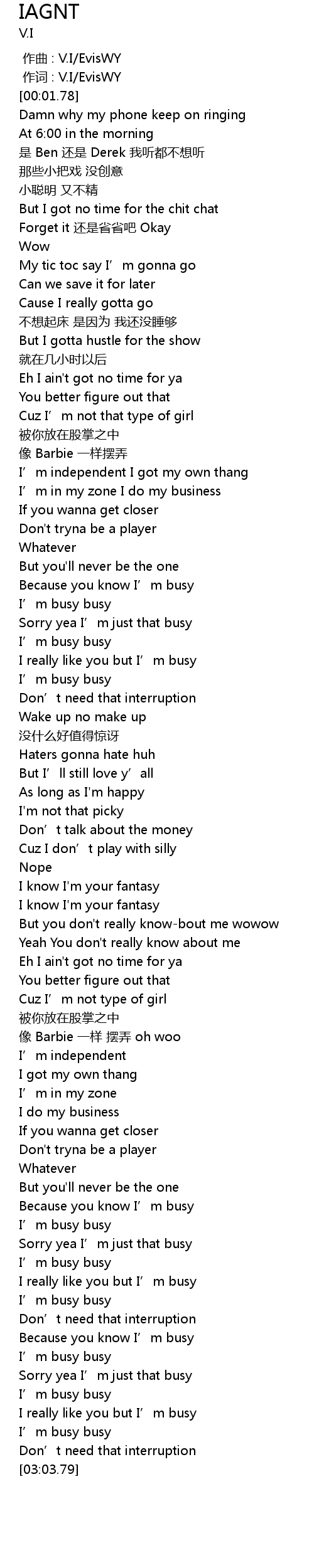 | [01:18.44] | I' m busy busy |
