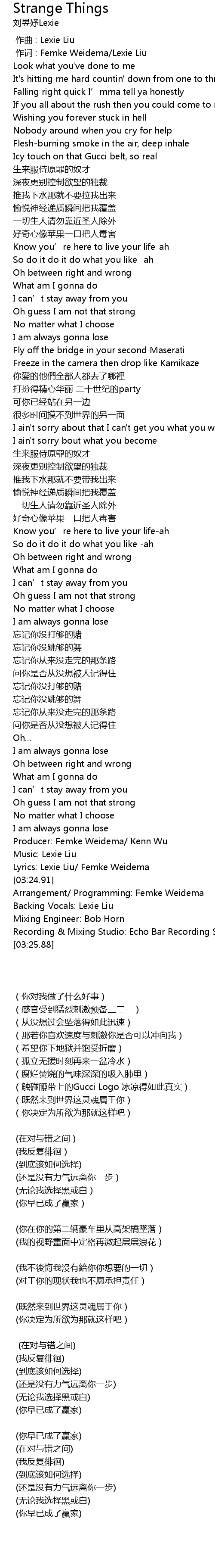 | [03:24.63] | Lyrics: Lexie Liu Femke Weidema |
