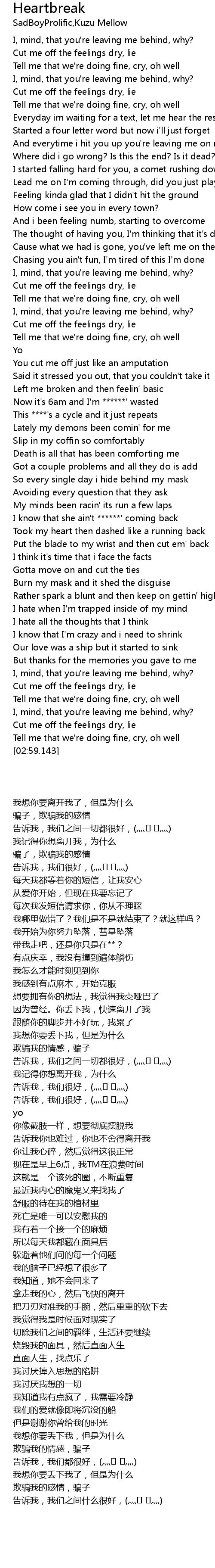 Cut me off the feelings dry, lie |