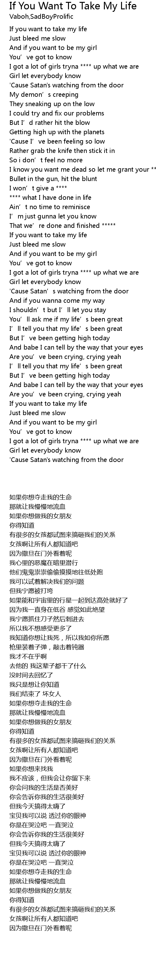 | [02:03.73] | If you want to take my life |