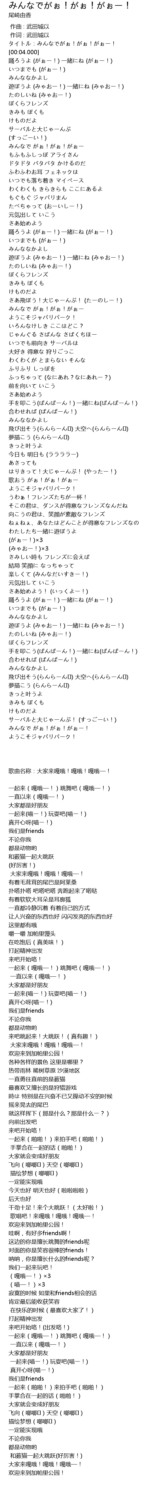 | [00:00.000] | タイトル:みんなでがぉ!がぉ!がぉー! |