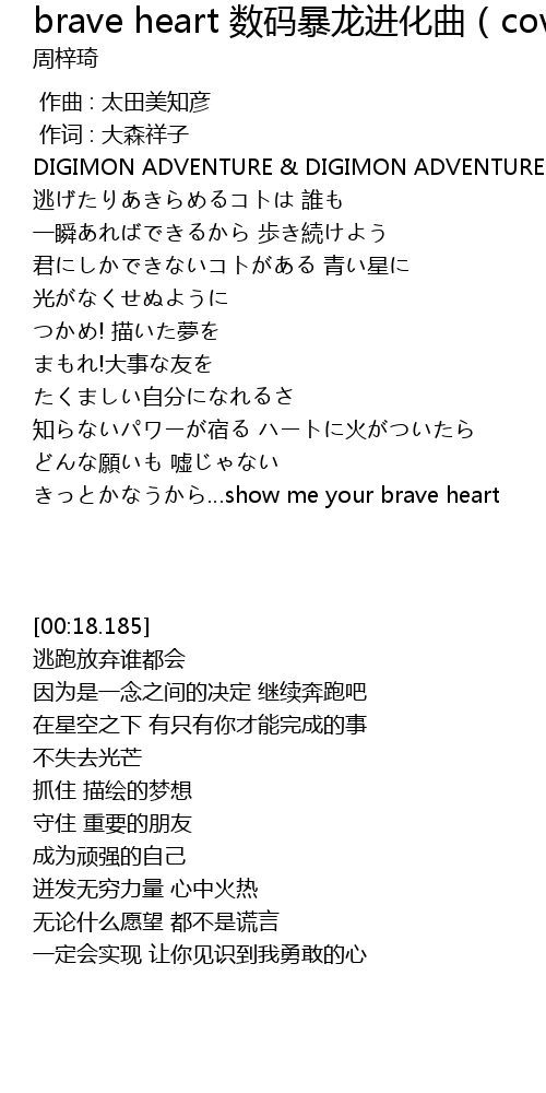 | Song | brave heart 数码暴龙进化曲(cover宮崎歩)(翻自 宮崎歩) |