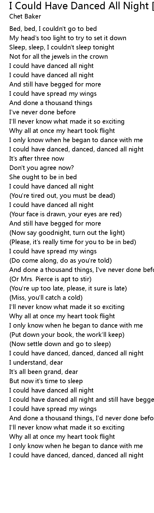 I could have danced, danced, danced all night |