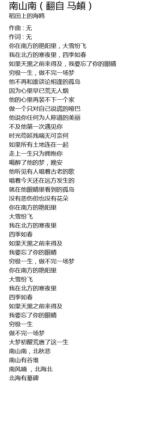 | 南风喃 ,北海北 | |