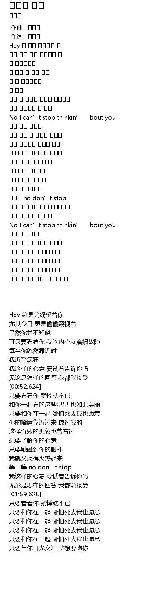 | [00:52.624] | No I can' t stop thinkin' ' bout you |