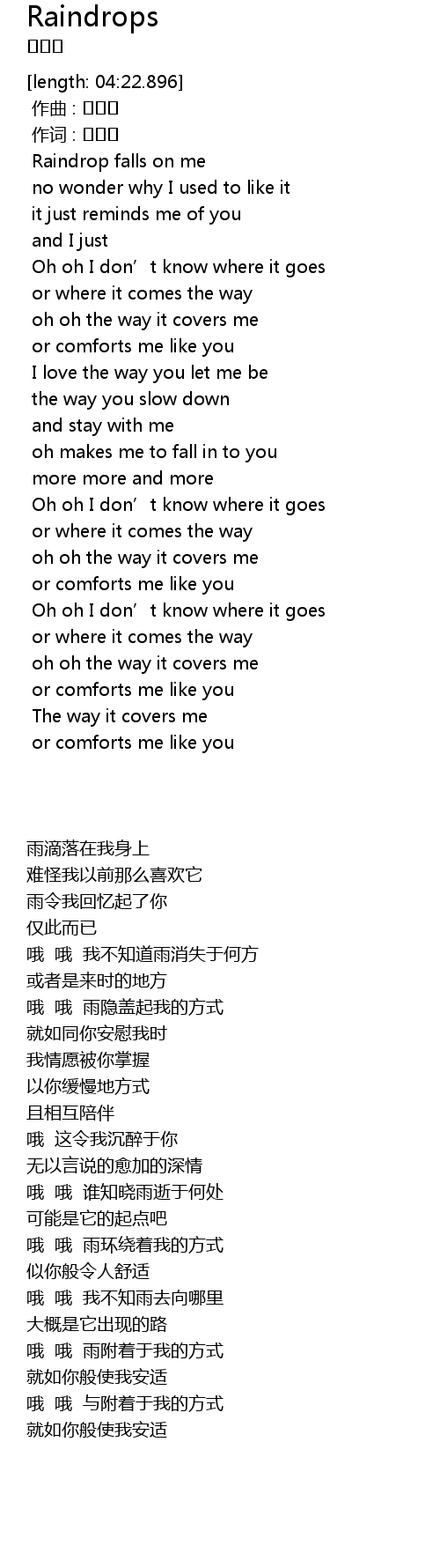 | [00:08.436] | Raindrop falls on me |