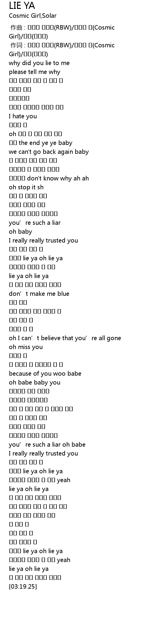 | [02:58.78] | 거짓말 lie ya oh lie ya |