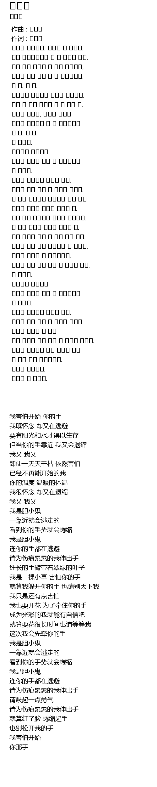 당신의 손이 오면 난 또 움츠러들죠. |