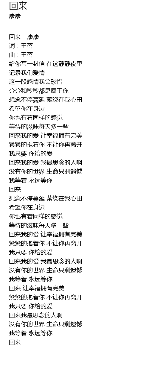 | 回来 - 康康 | |
