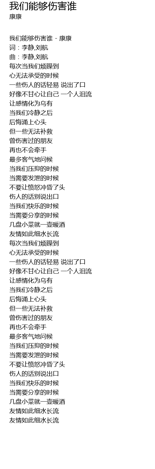| wǒ men néng gòu shāng hài shuí kāng kāng | |