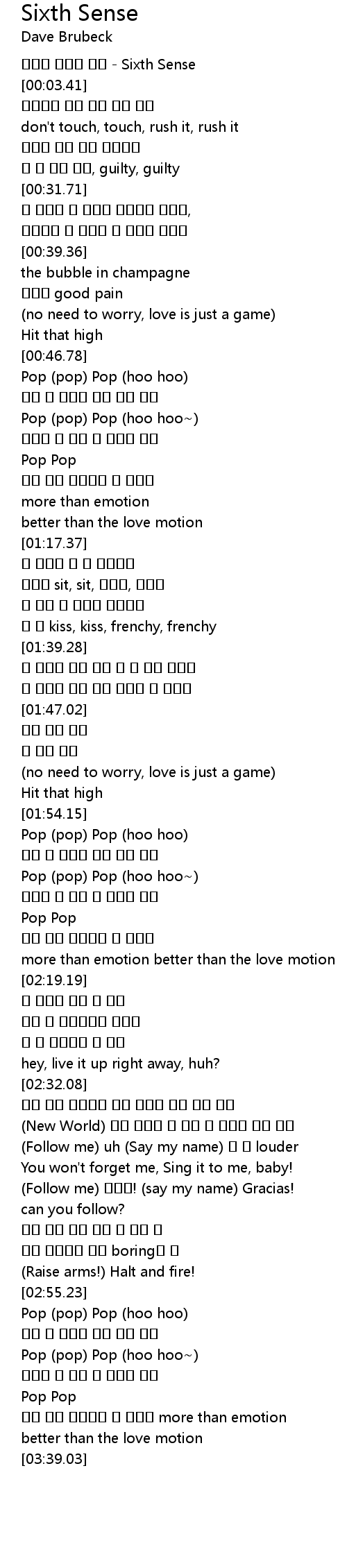 | [00:00.07] | 브라운 아이드 걸스 - Sixth Sense |