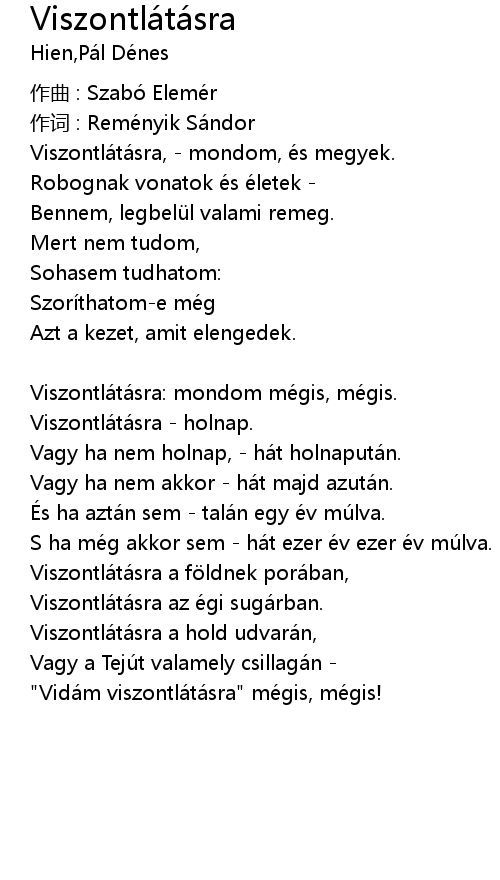 | Viszontlá tá sra: mondom mé gis, mé gis. | |