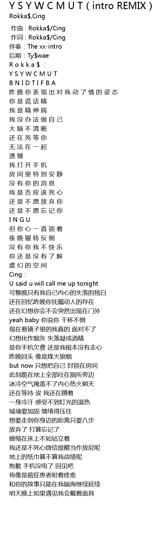 | [00:00.717] | 作词 : Rokka$/Cing |