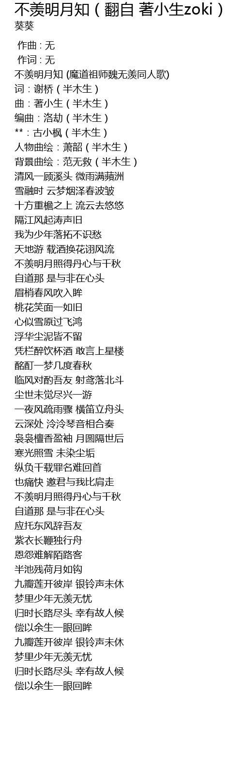 | [00:00.37] | 不羡明月知 (魔道祖师魏无羡同人歌) |