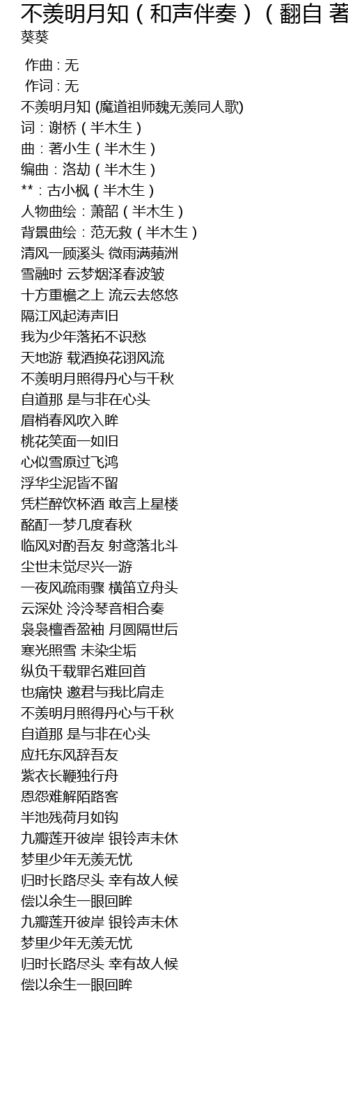 | [00:00.37] | 不羡明月知 (魔道祖师魏无羡同人歌) |