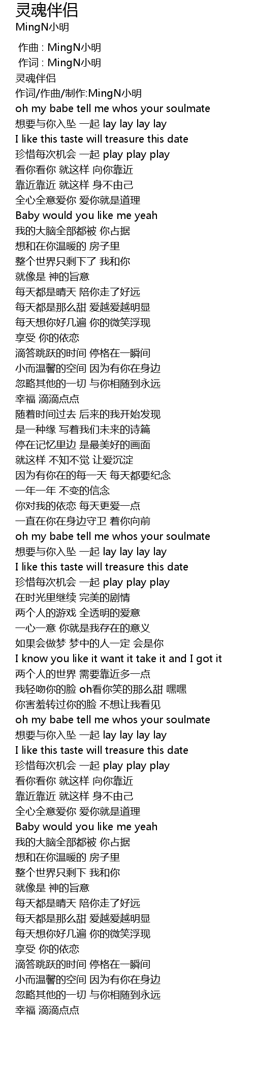 | [00:01.601] | oh my babe tell me whos your soulmate |
