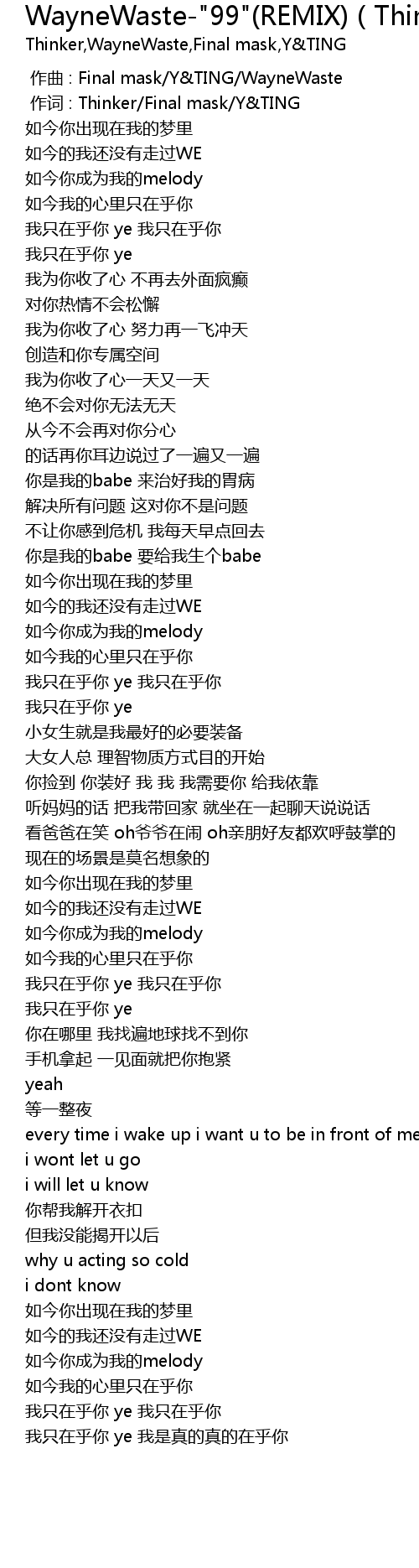 | Song | WayneWaste-"99"(REMIX)(Thinker / WayneWaste / Final mask / Y&TING remix) |
