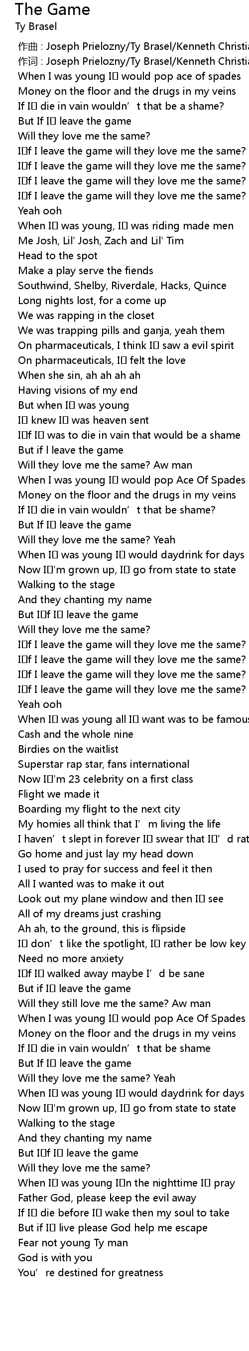 | [01:35.812] | I f I leave the game will they love me the same? |