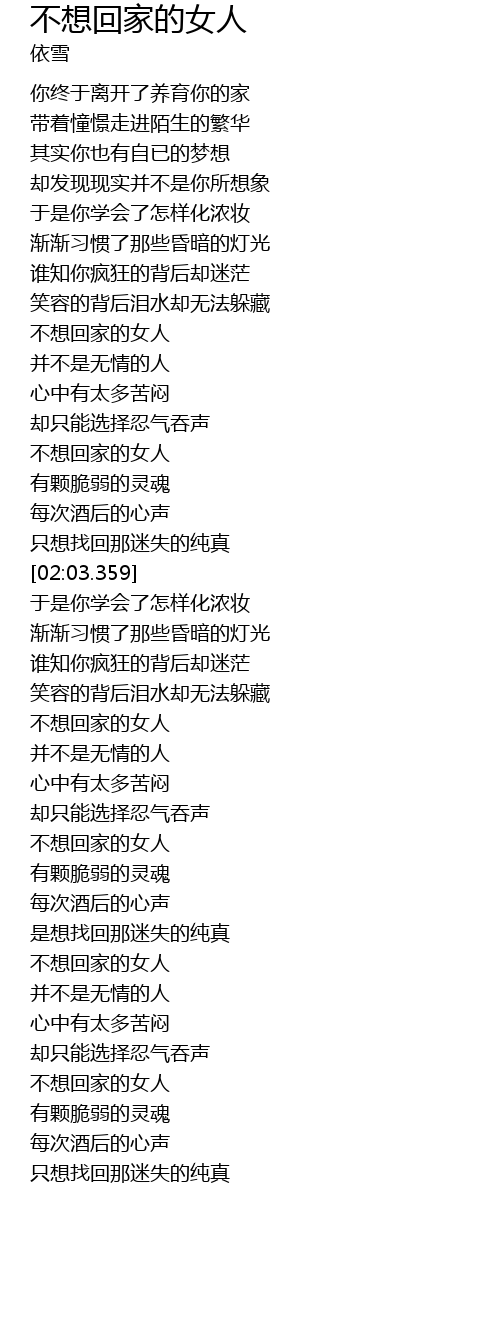 | [03:01.370] | bu xiang hui jia de nv ren |