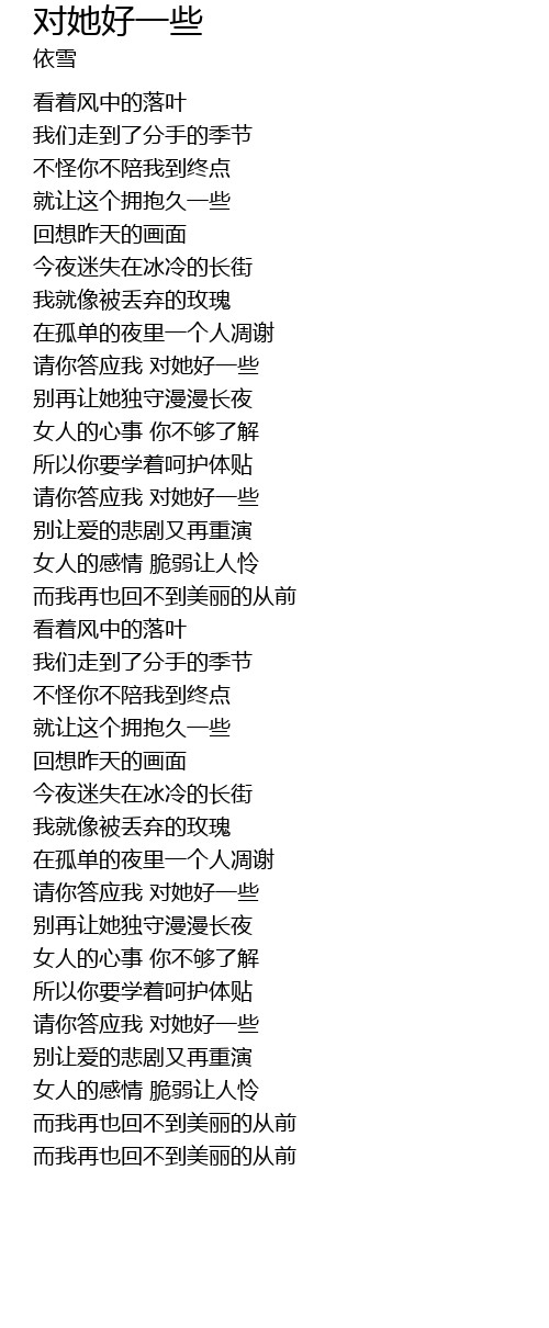 | qǐng nǐ dā yìng wǒ duì tā hǎo yī xiē | |