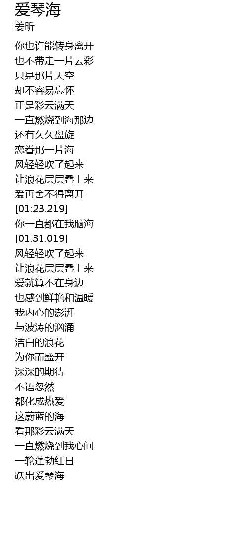 | [00:46.549] | yī zhí rán shāo dào hǎi nà biān |