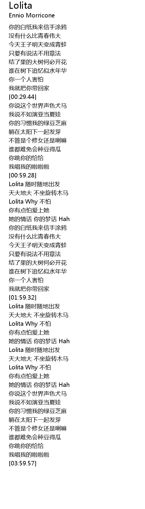 | [03:00.44] | Lolita 随时随地出发 |