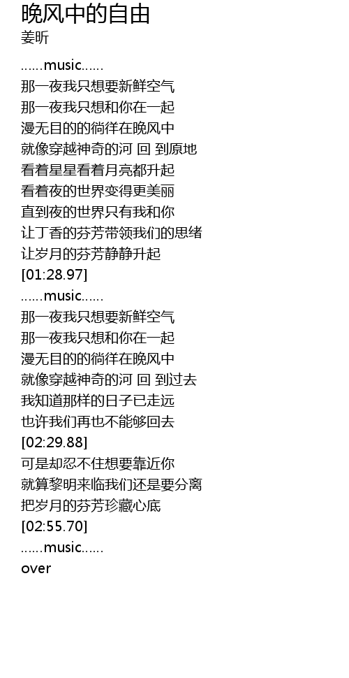 | [01:44.92] | 那一夜我只想要新鲜空气 |