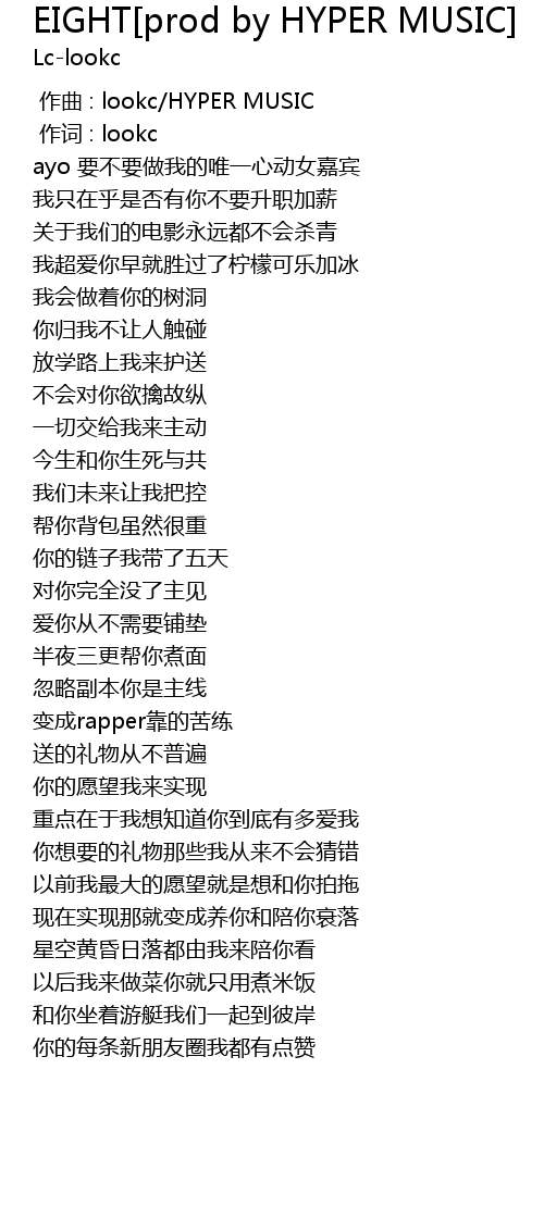 | [00:00.000] | zuo qu : lookc HYPER MUSIC |