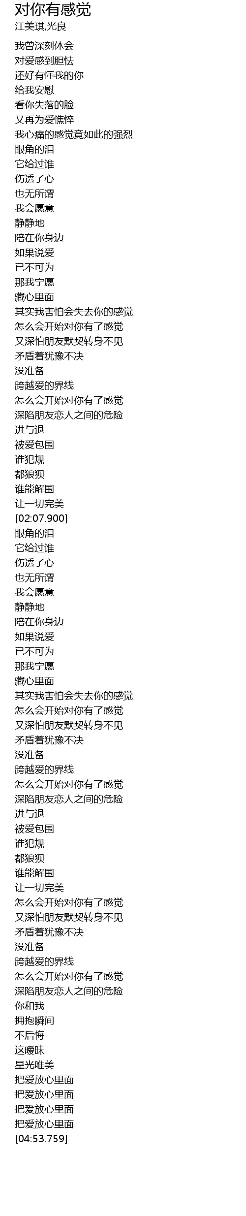 | [02:43.500] | 其实我害怕会失去你的感觉 |