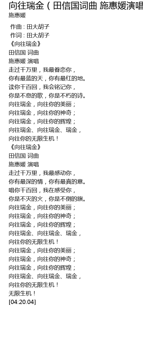 | [03:48.60] | 向往瑞金、向往瑞金、瑞金, |
