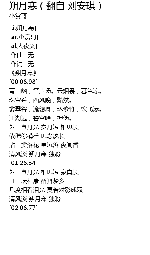 | [01:49.39] | 清风淡 朔月寒 独盼 |