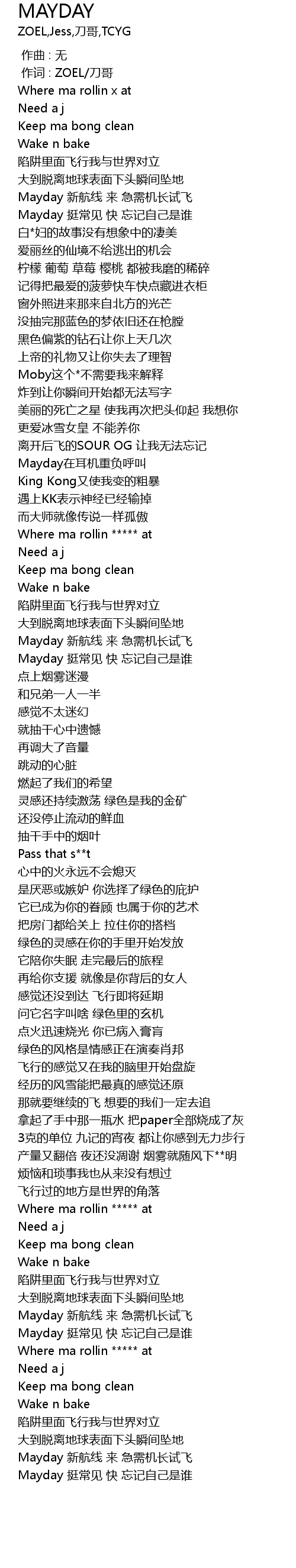 | [00:53.454] | Mayday 挺常见 快 忘记自己是谁 |